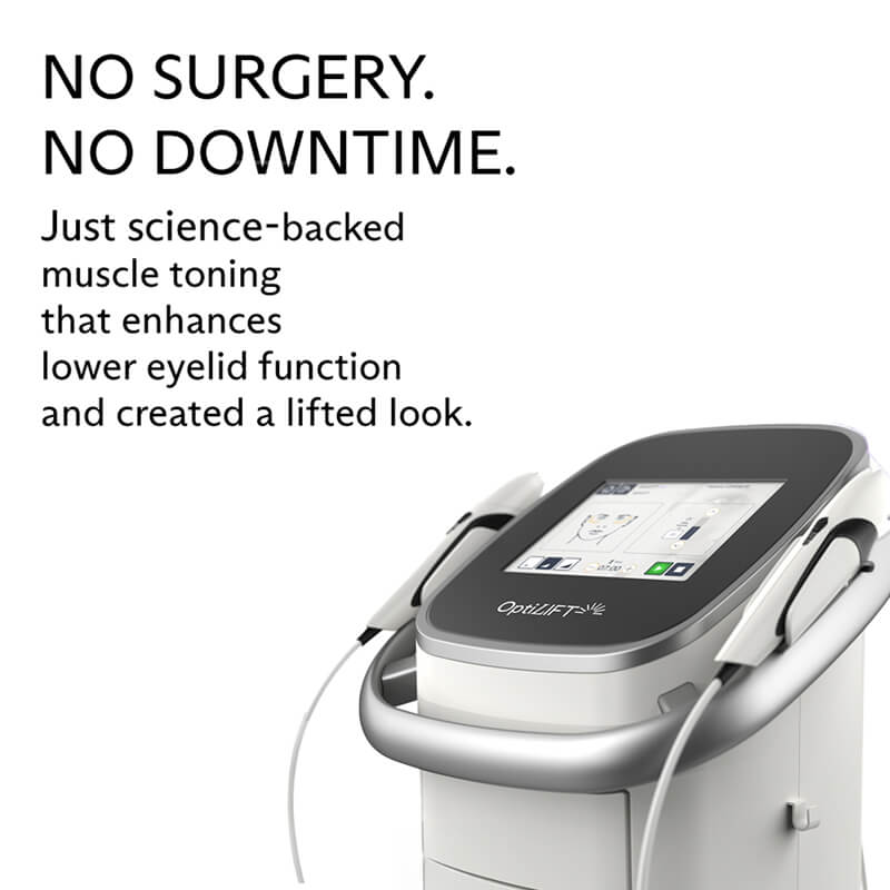 Each OptiLIFT session typically lasts 15-20 minutes and requires no anesthesia or numbing agents. Patients remain comfortably seated while the specially designed applicator delivers targeted muscle stimulation to the periorbital area.