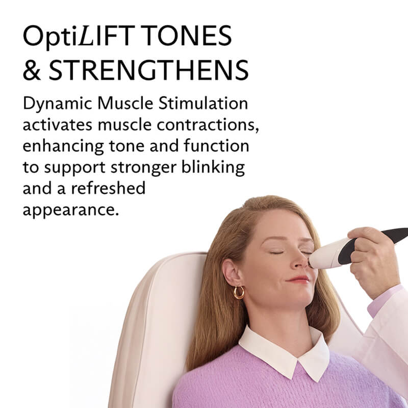 OptiLIFT addresses lower lid laxity through its innovative Dynamic Muscle Stimulation technology (DMSt). This advanced system delivers precisely calibrated electrical pulses to trigger nerve signals in the facial muscles, inducing controlled muscle contractions that strengthen and tone the periorbital area.